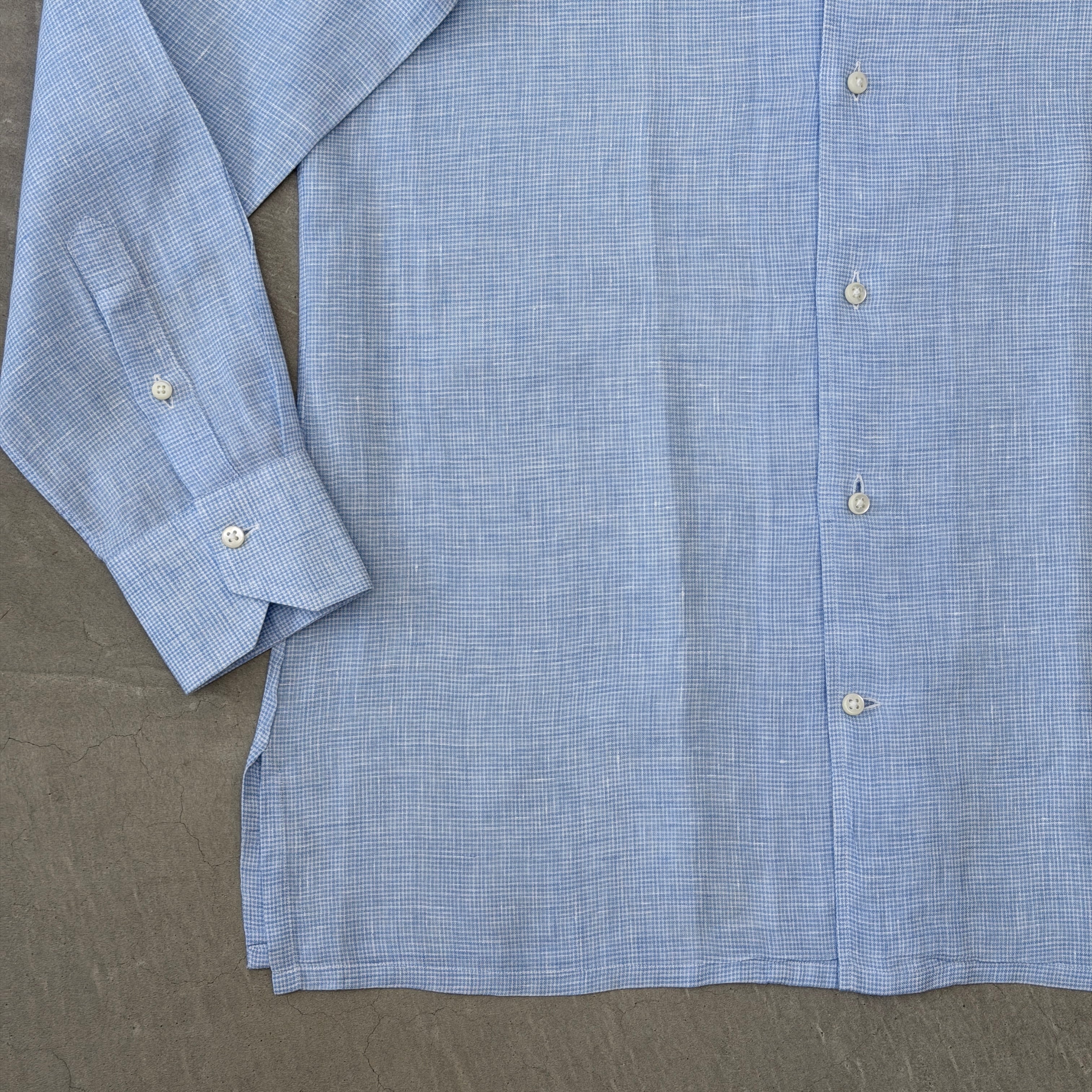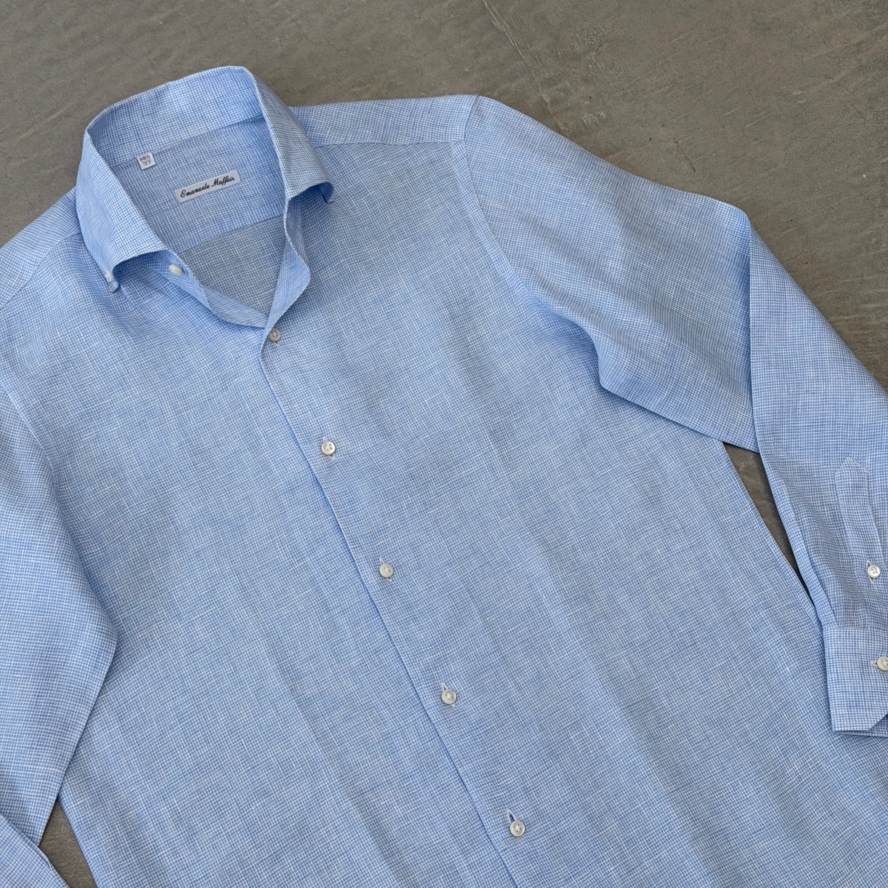 Emanuele Maffeis Cotton Linen Check shirt Sax blue 37