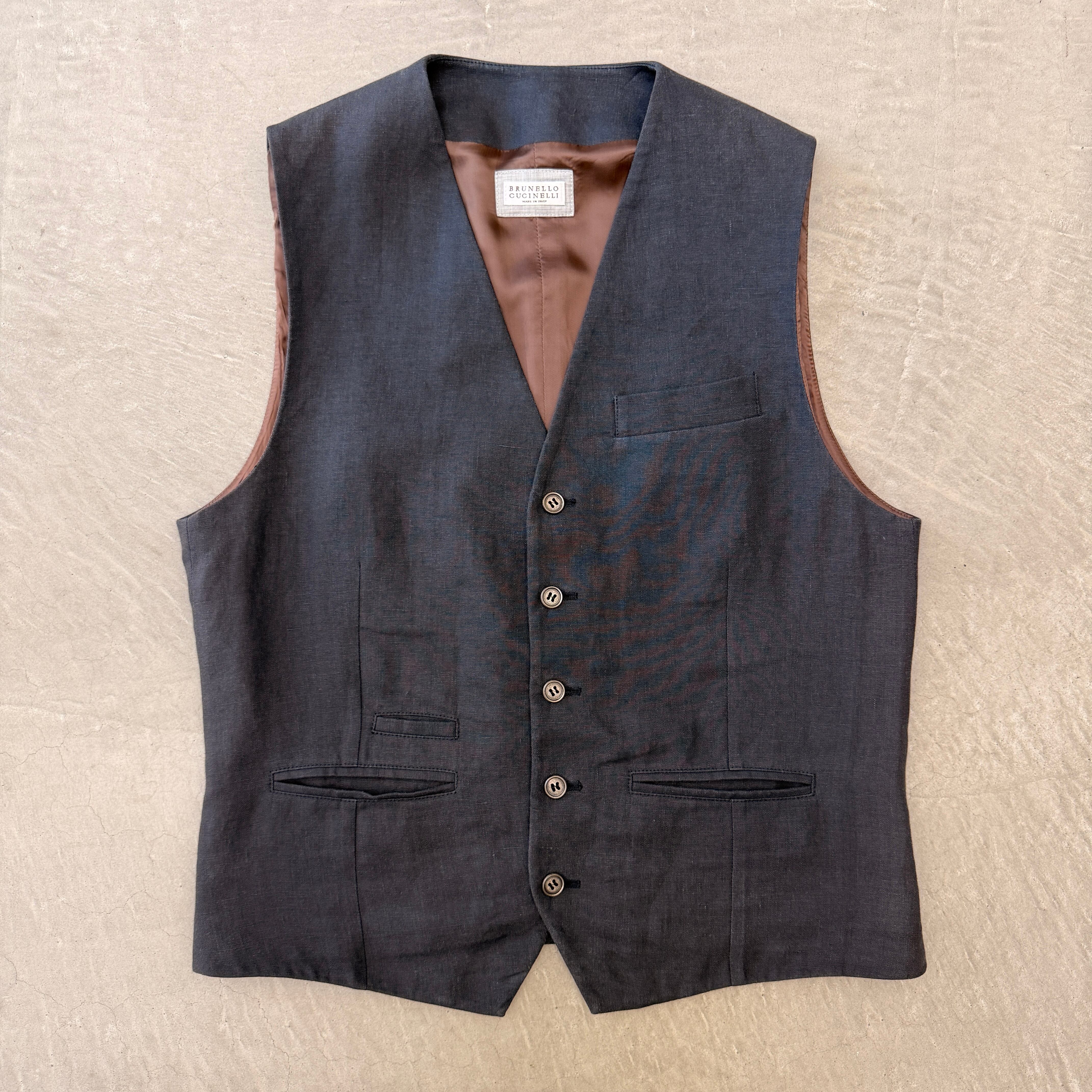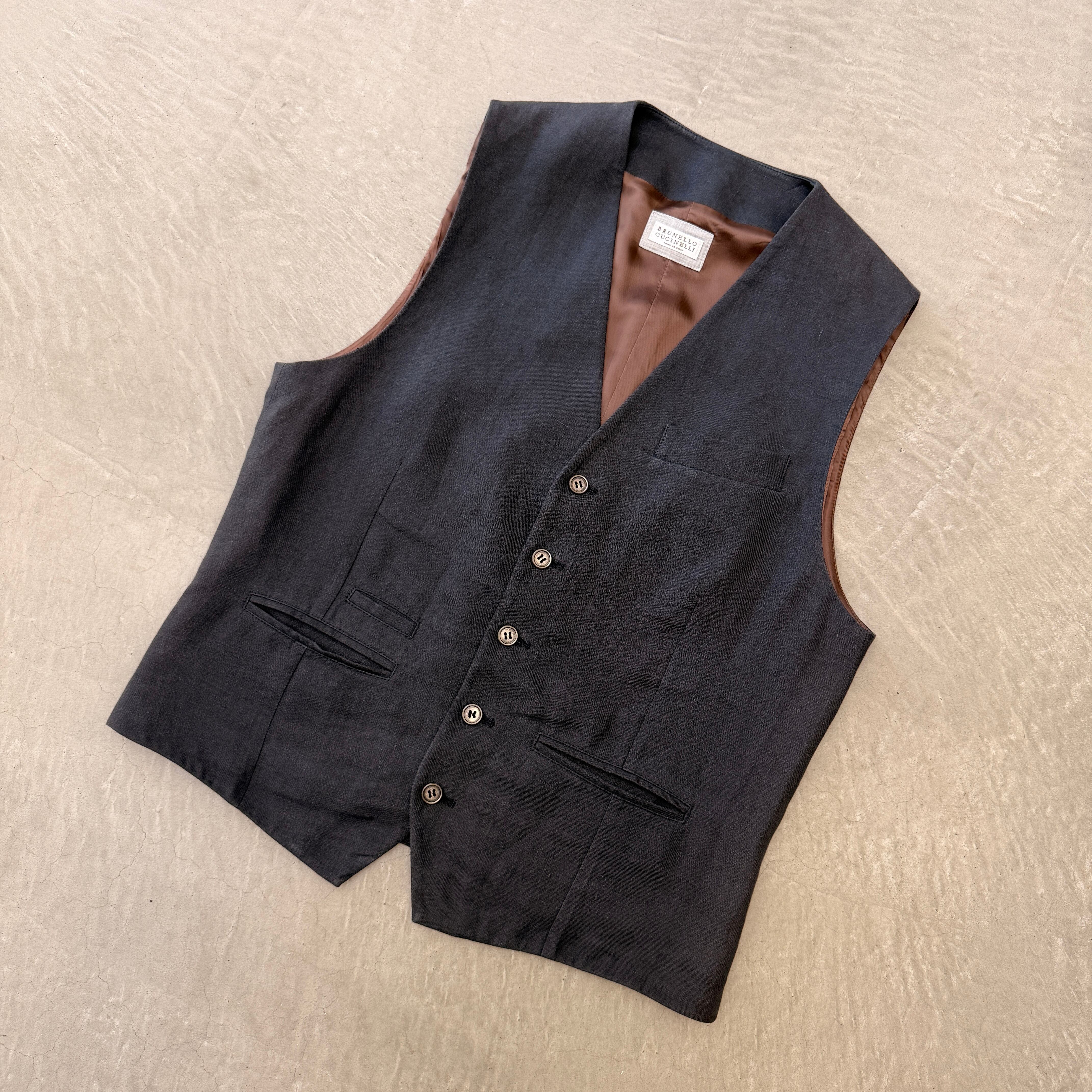 BRUNELLO CUCINELLI Linen Vest Navy 48