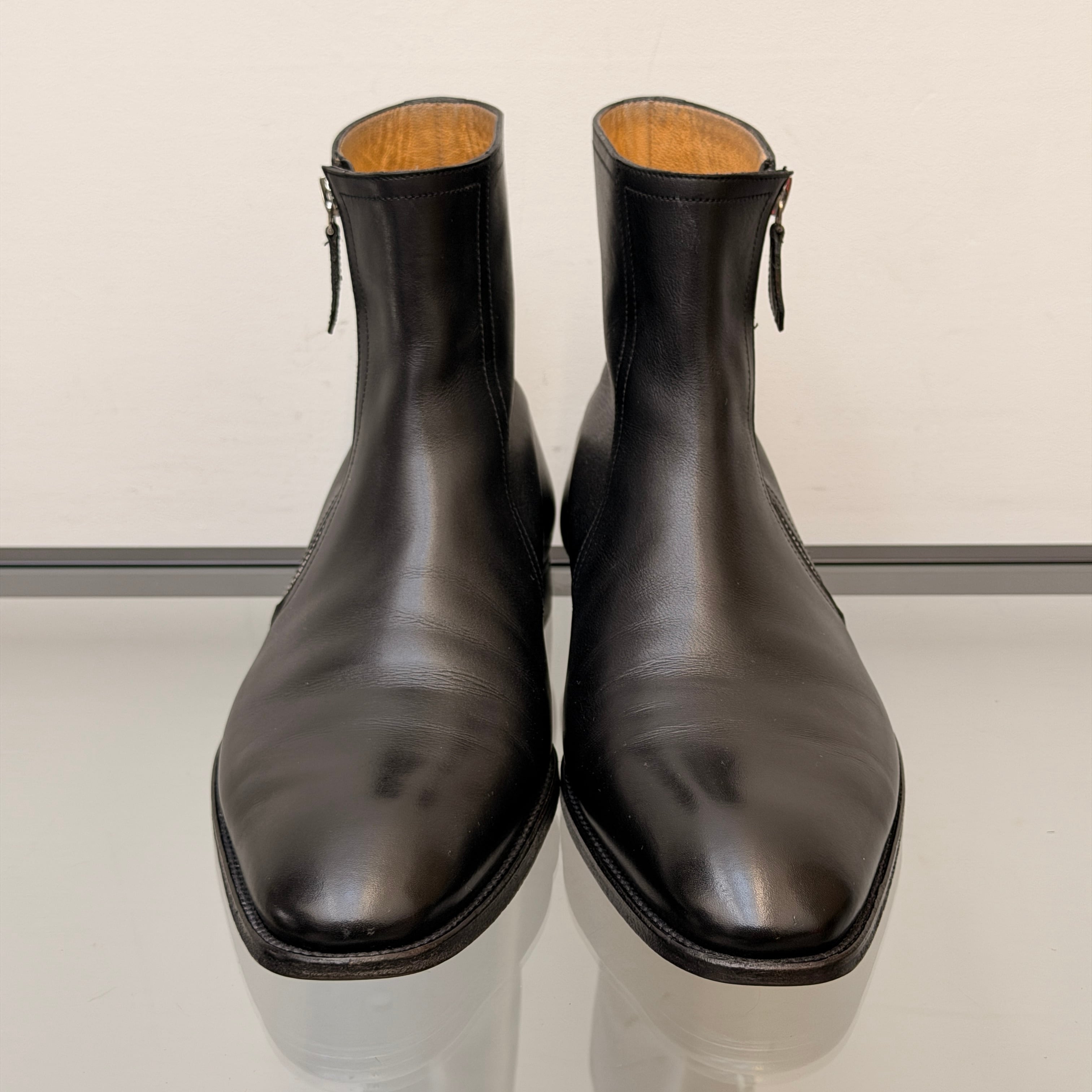 HERMES Calfskin Zip Up Boots Black 41