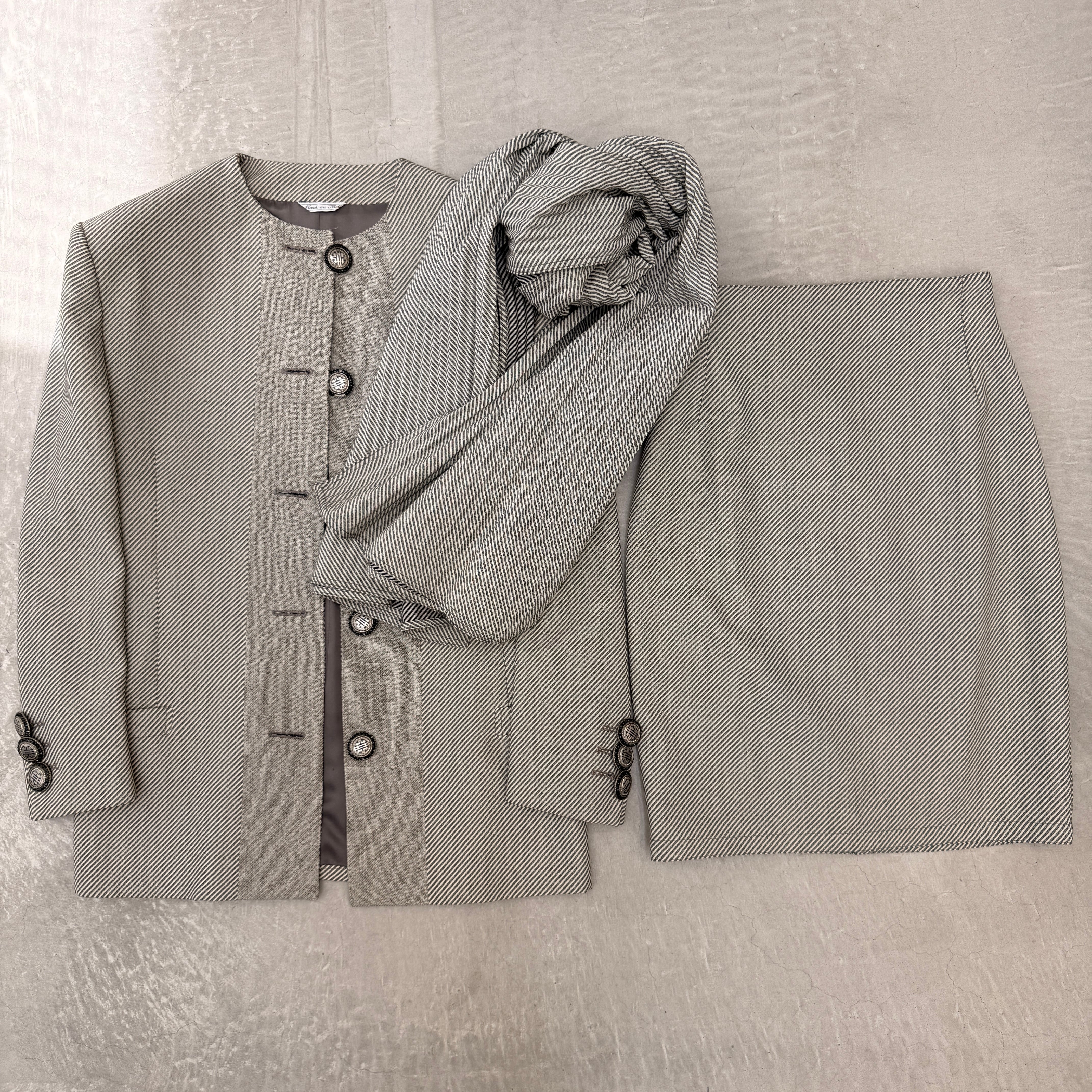 VERSACE Wool Skirt Suit with Stole Beige 38