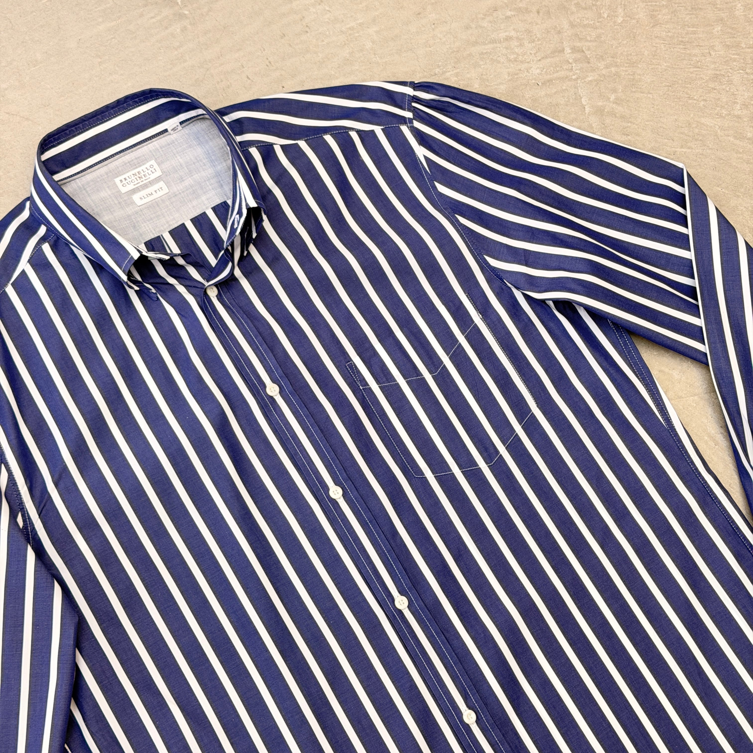 Brunello Cucinelli Navy Striped Cotton Shirt XL