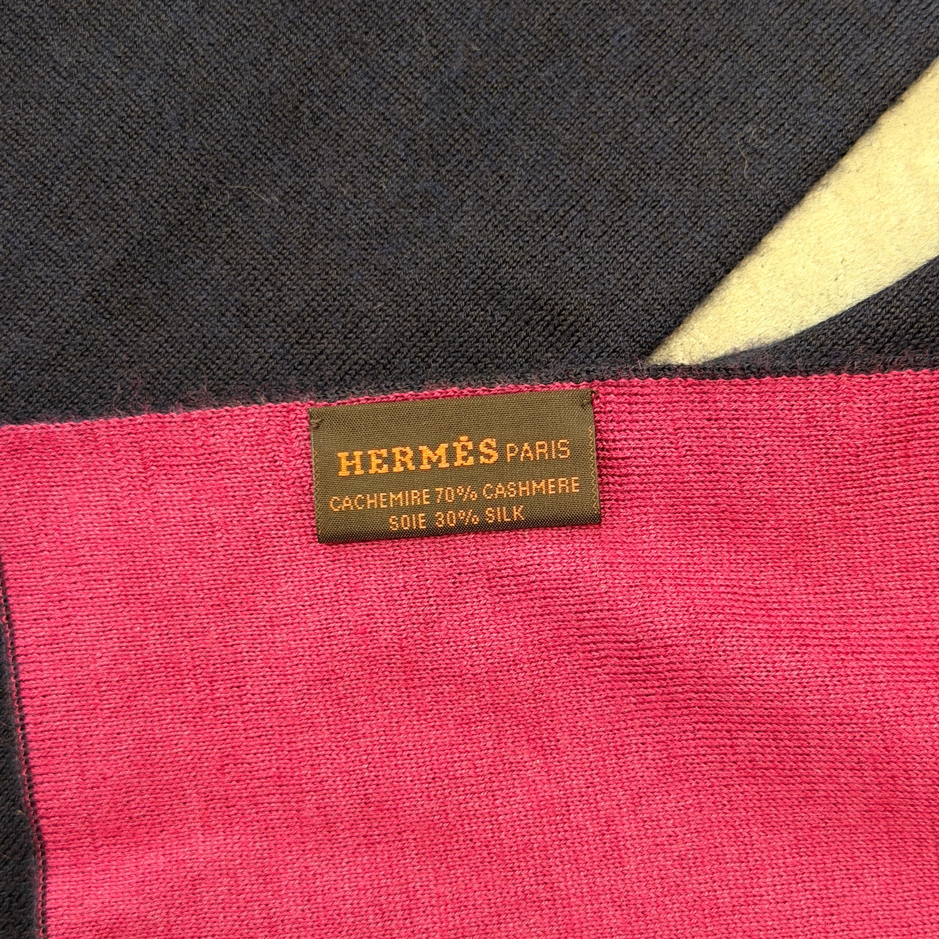 HERMES Reversible Cashmere and Silk Scarf Navy and Purple