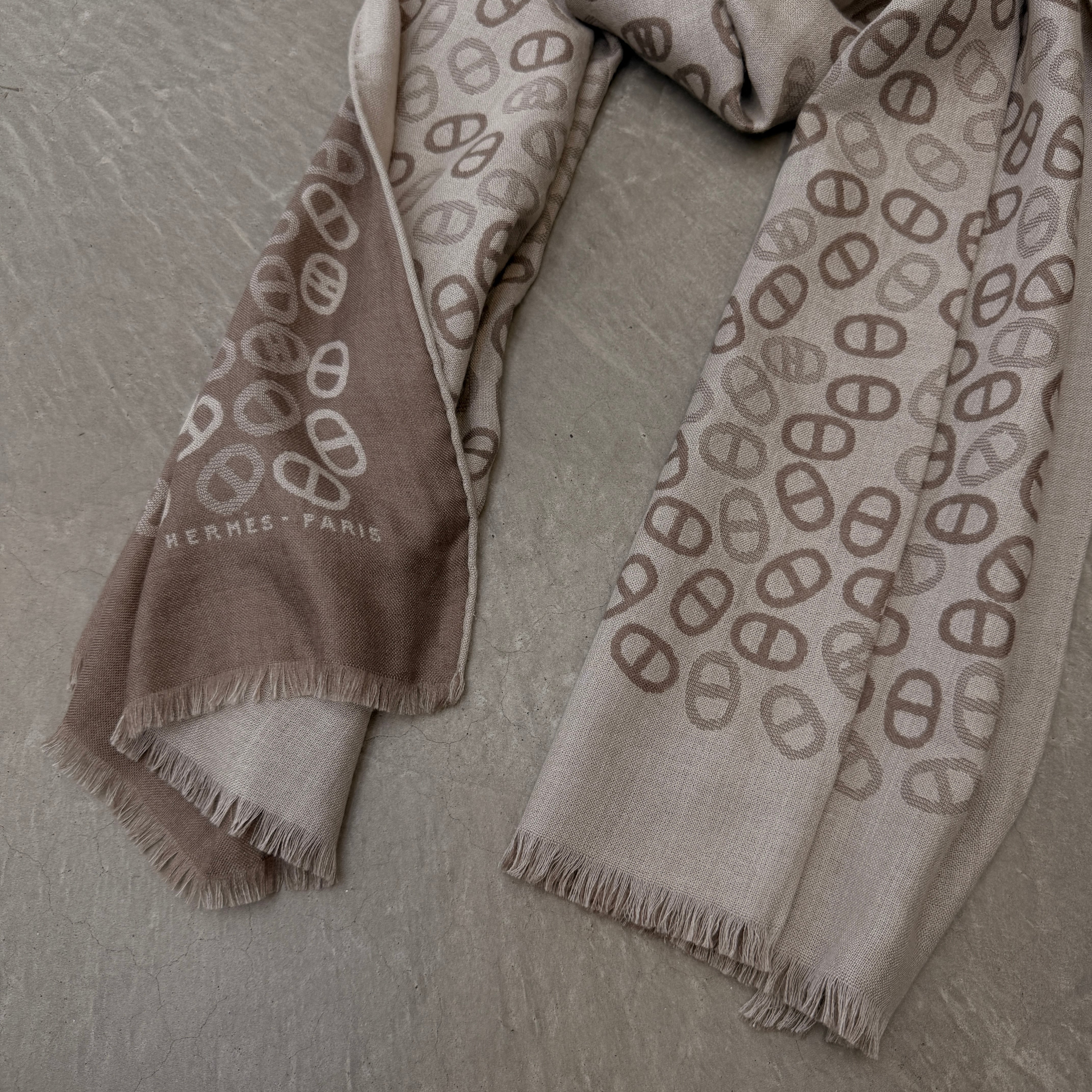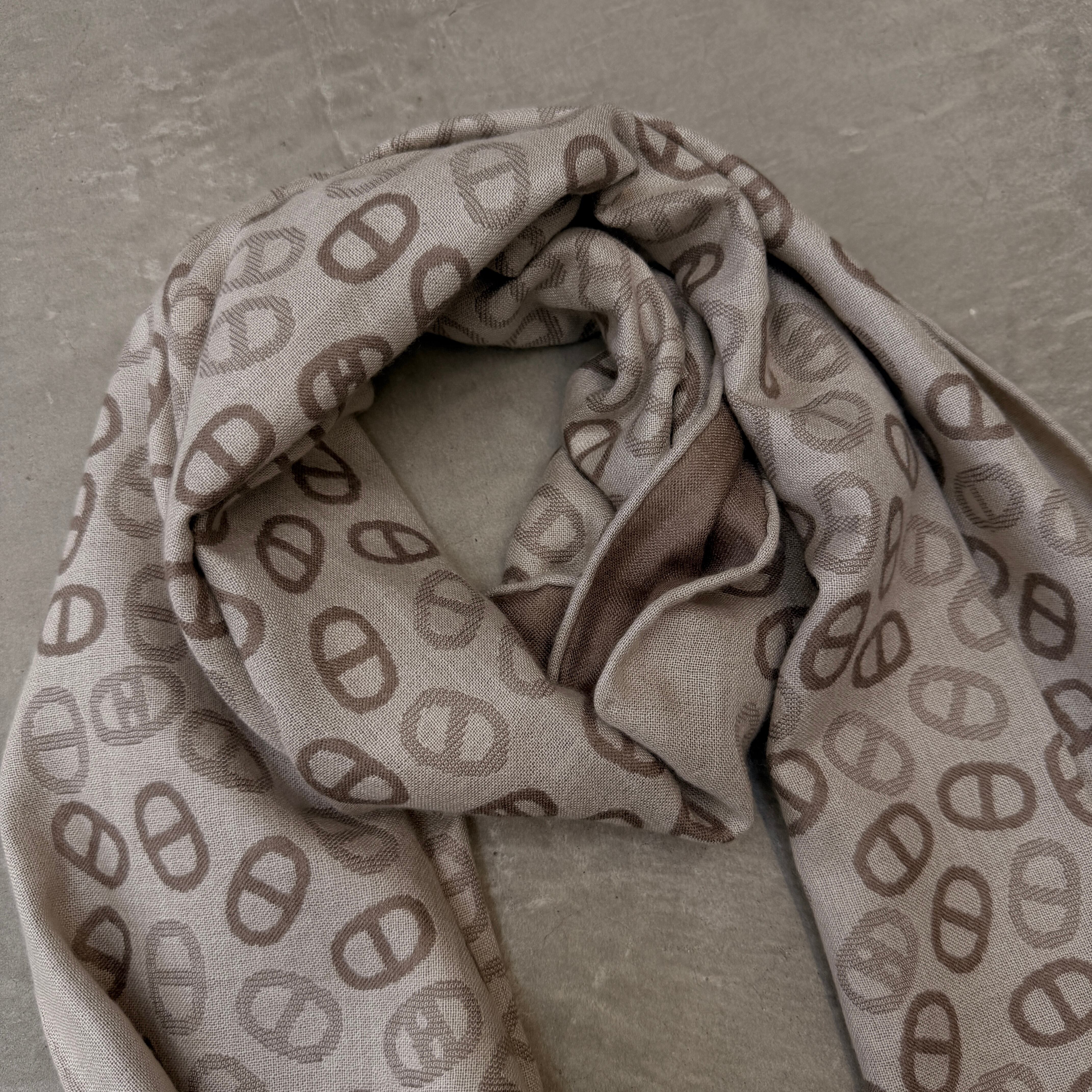 HERMES Scarf Chaine d'Ancre pattern cashmere silk beige