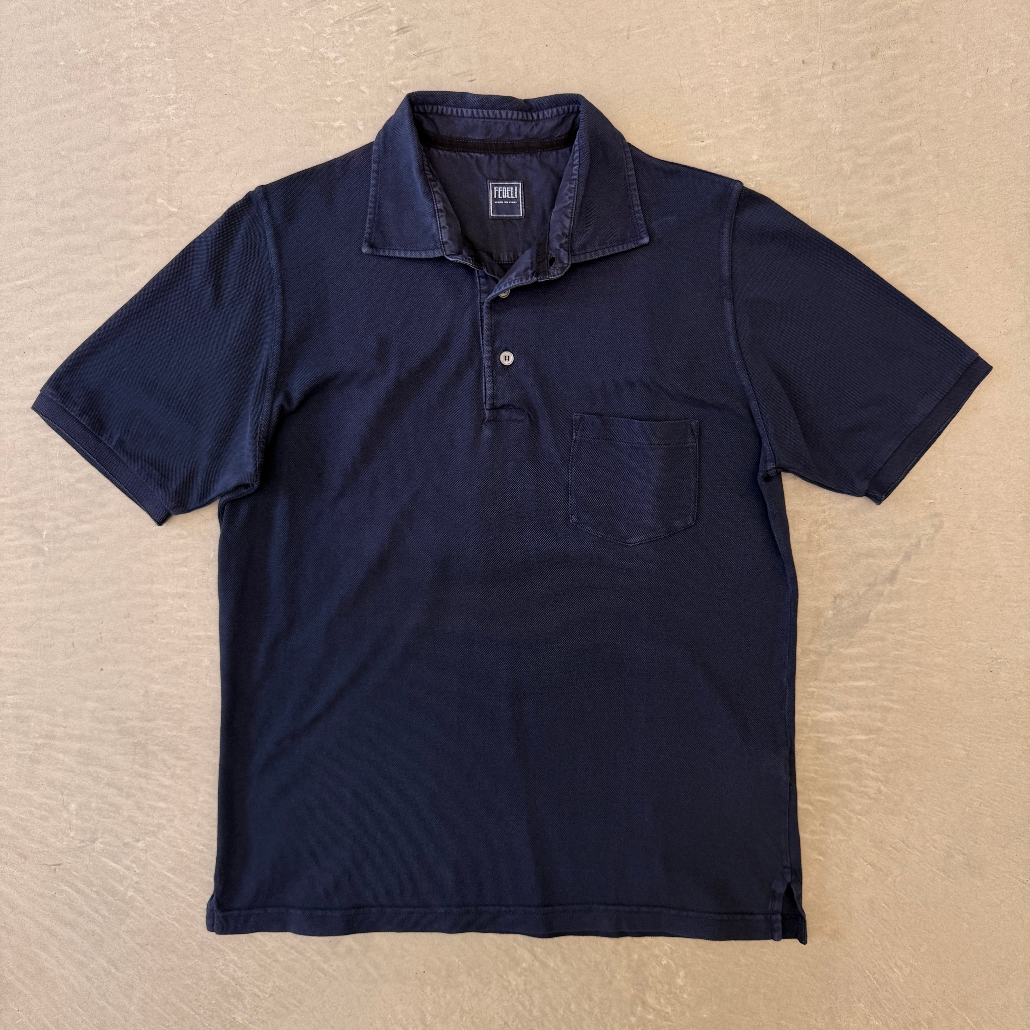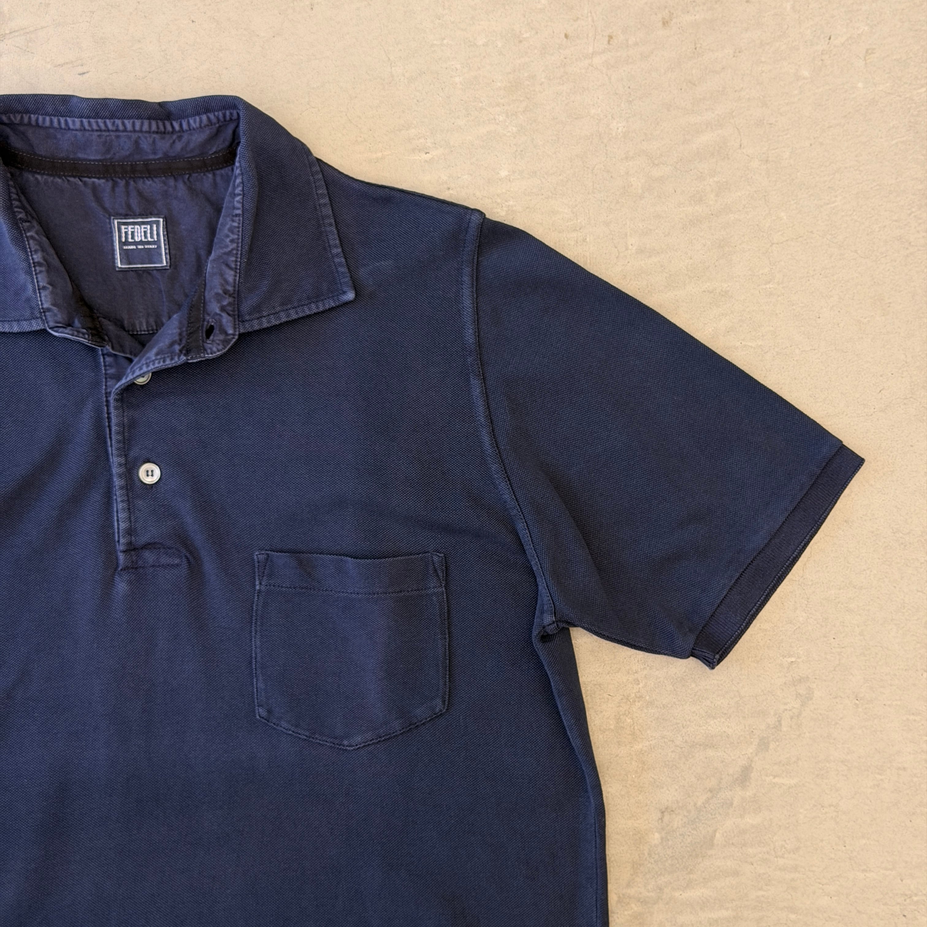 FEDELI Cotton Polo shirt with pocket Navy 46