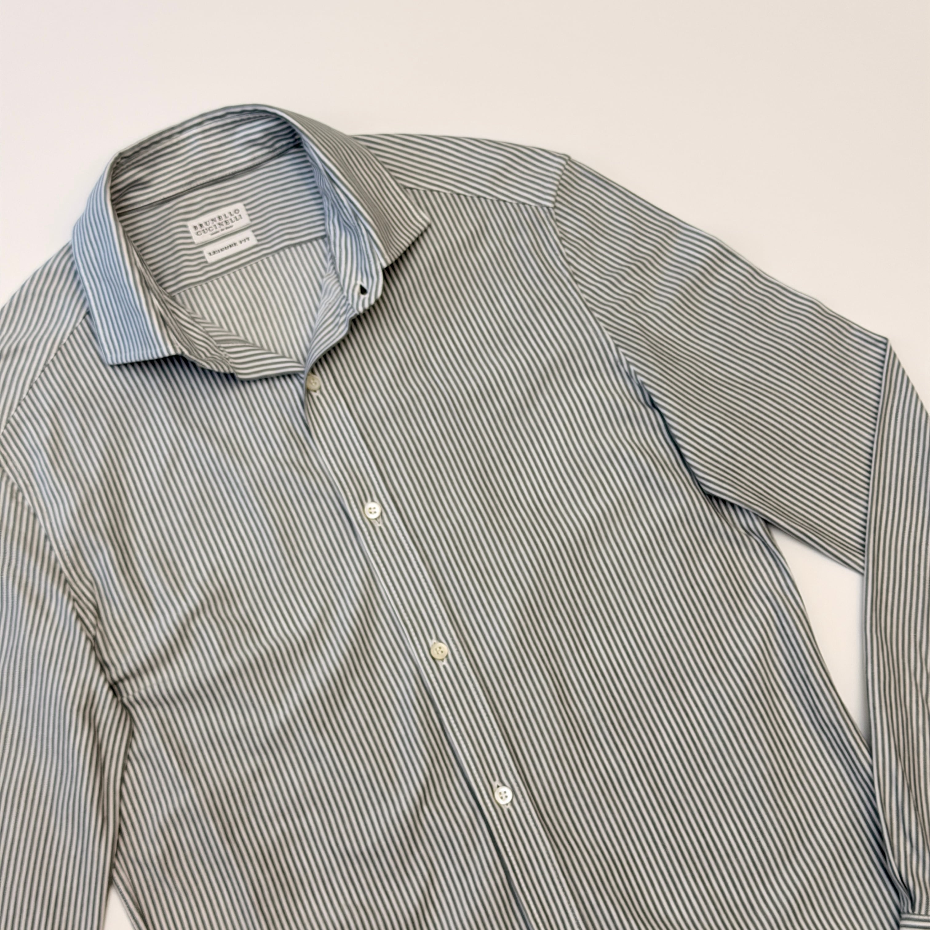 Brunello Cucinelli Shirt cotton gray stripe S