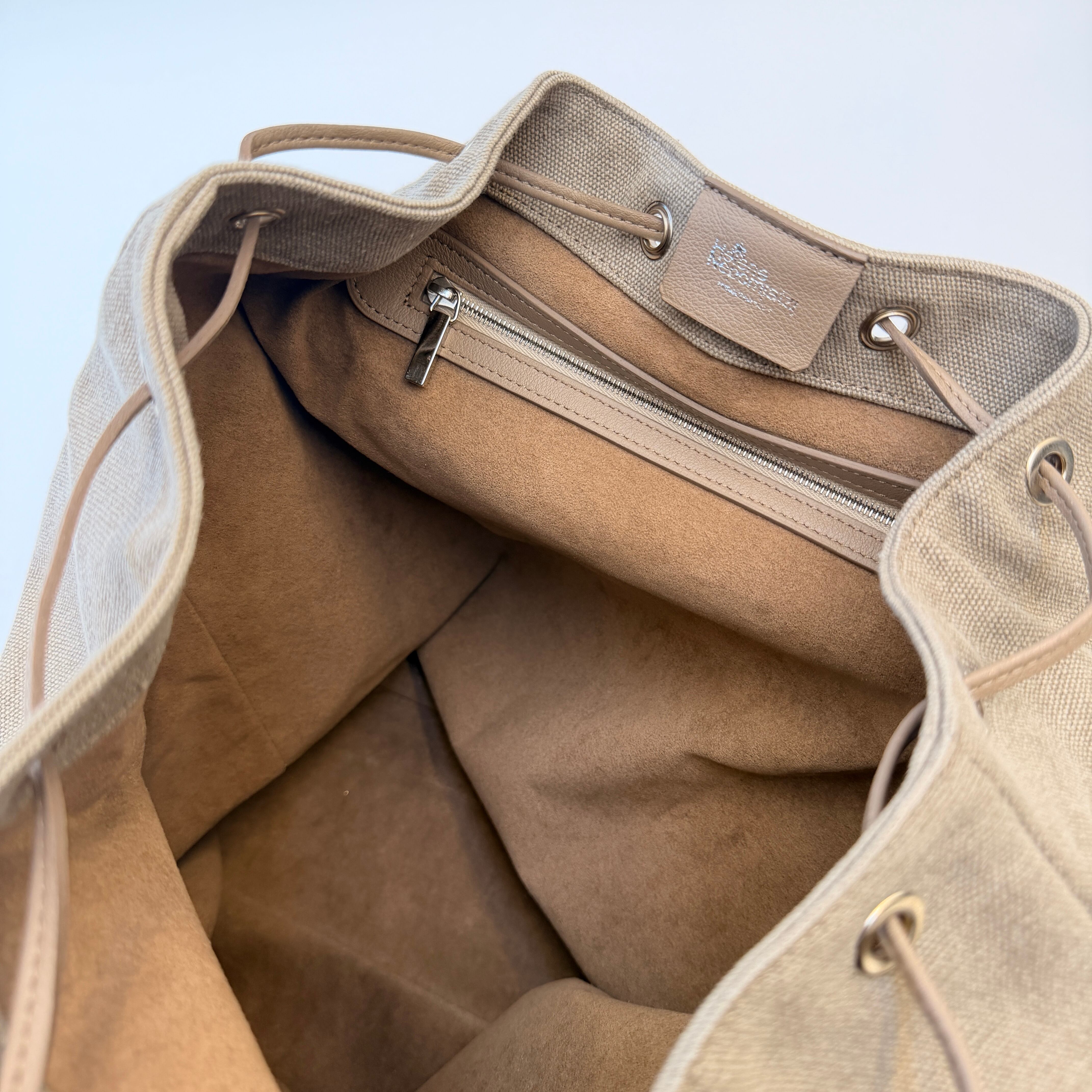 Hélène Nepomiatzi Backpack Calfskin Canvas Beige